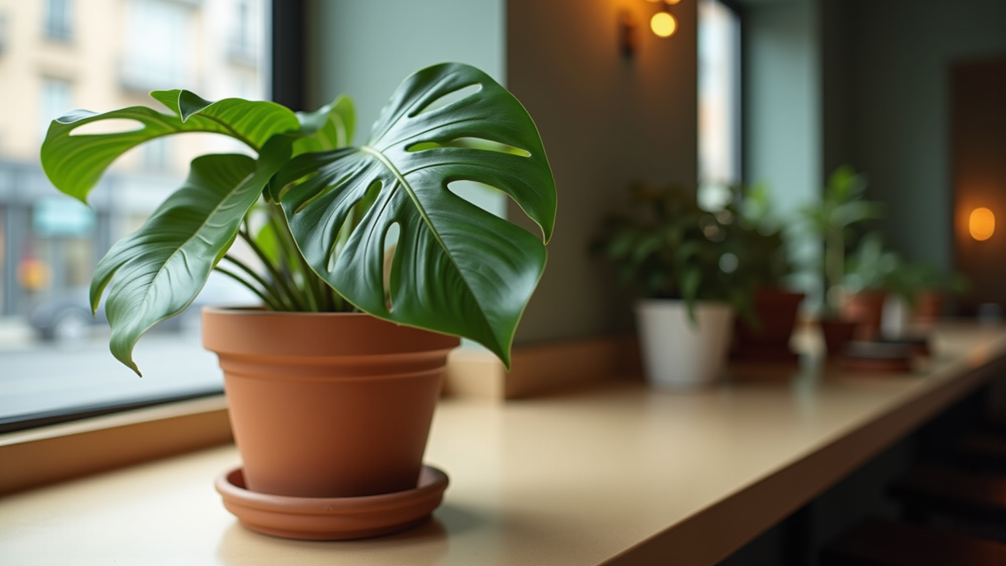 Coffee bar for a cozy plant-filled break.
